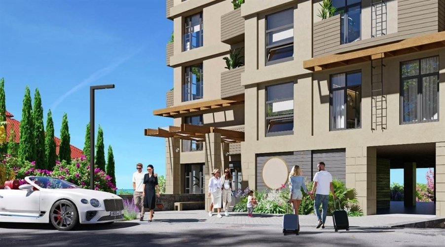 Планировки с одной или тремя комнатами подойдут для комфортного размещения взрослых пар, семей с детьми или больших компаний. Видовые характеристики очаруют даже опытных путешественников. С террасы верхних этажей открывается головокружительная панорама на неповторимую природу крымского побережья, Черное море и горы. Особенность комплекса - гармоничный ландшафт, озеленение внутренней среды, удачно дополняющие местные природные виды. Продуманная инфраструктура, удобные подъездные пути и собственный паркинг - приятное дополнение для жителей апарт-комплекса.