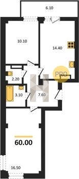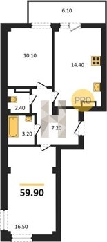 Площадь от 59.9 м2