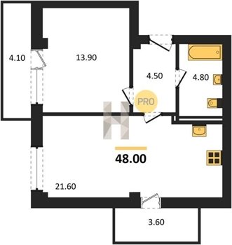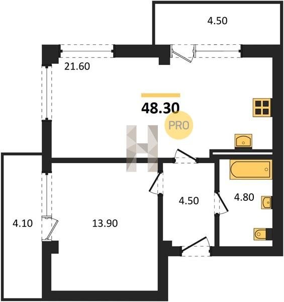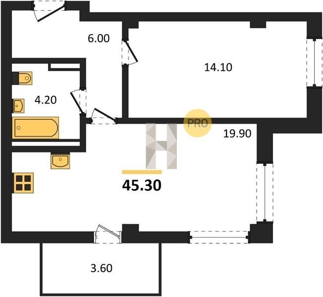 Площадь от 45.3 м2