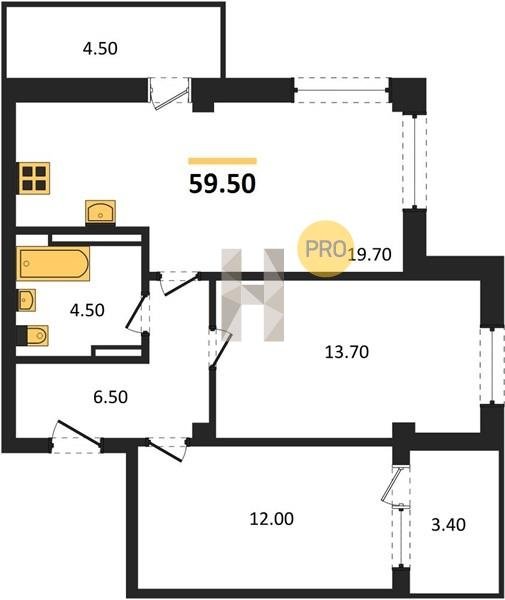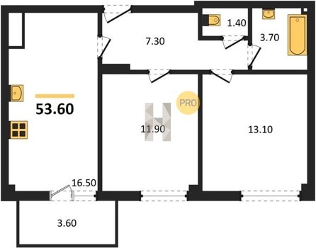 Площадь от 53.6 м2