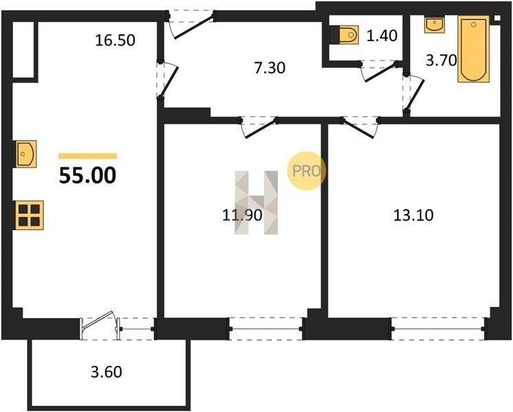Площадь от 55 м2