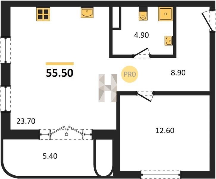 Площадь от 54.8 м2